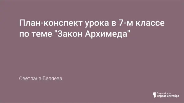 Цели урока: изучить содержание закона Архимеда, приблизиться к раскрытию физической сути плавания тел; закрепить знания через решение качественных и расчетных задач.