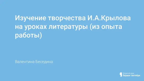 Иван Андреевич Крылов – один из русских поэтов, наиболее любимых учащимися младшего и среднего возраста. Язык басен Крылова сложен и самобытен по словарю и строю, но уже при первом прочтении басен школьники вникают в общий смысл произведения, чувствуют тонкую иронию автора. Подготовку учащихся к изучению басен И.Крылова я начинаю заранее, используя межпредметные связи на уроках русского языка: предложения с прямой речью из басен И.Крылова, диалоги, слова оценочной лексики, написание крыловских афоризмов, рассказы-миниатюры. Произведения И.А.Крылова помогают воспитывать в школьниках человеческие и гражданские качества, учат добру.