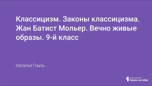 Структура спаренных уроков позволяет, опираясь на уже известные учащимся сведения о классицизме, расширить и углубить их на примере анализа содержания картины Давида "Клятва Горациев" и комедии Мольера "Тартюф"; отрабатывать навыки работы с драматическим произведением, умение выразительно читать текст и интерпретировать его.