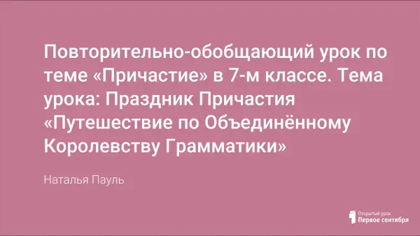 Цели урока: повторить, закрепить знания по теме “Причастие”; научить использовать полученные знания, умения и навыки в практической деятельности; способствовать развитию внутреннего плана действий на основе работы по алгоритму; воспитывать уважение друг к другу, научить соблюдать правила работы в коллективе, формировать положительную мотивацию к учебной деятельности на основе использования элементов техники личностно ориентированного обучения.