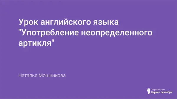 Цель урока: ознакомить с неопределенным артиклем в английском языке, сформировать умения выявлять различия в употреблении форм (a/an).