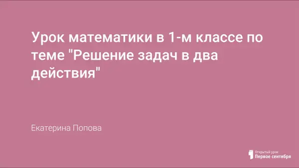 Предлагаемый материал для учителей начальных классов по предмету математика в 1-м классе по теме "Решение задач в два действия". Реализуется деятельностный подход. Урок соответствует требованиям ФГОС. Цель урока: создание условий на уроке для формирования умения решать задачи, совершенствовать вычислительные навыки.
