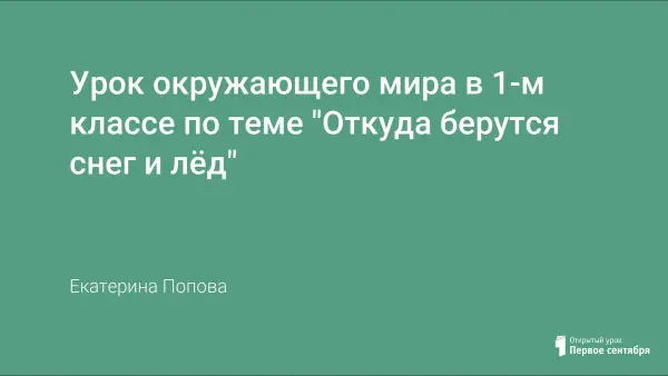 Конспект урока и презентация для учителей начальных классов по предмету окружающий мир в 1-м классе по теме "Откуда берутся снег и лёд". Реализуется деятельностный подход, используется метод групповой работы, организуется исследовательская деятельность учащихся.