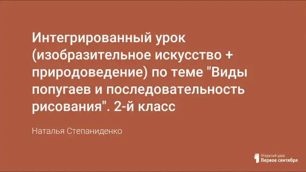 Урок в увлекательной форме знакомит детей с разнообразием видов попугаев, их особенностями обитания в природе, учит последовательно рисовать птицу, выделять особенности строения, форм, применять знание основ цветоведения.