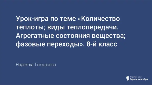 Представлена урок-игра, выполняющая роль обобщения и систематизации знаний по теме «Количество теплоты; виды теплопередачи. Агрегатные состояния вещества; фазовые переходы» для 8-го класса. Подготовка к мероприятию требует от 10 до 14 дней. В этот период класс разбивается на 4 группы. Каждая команда получает задания.