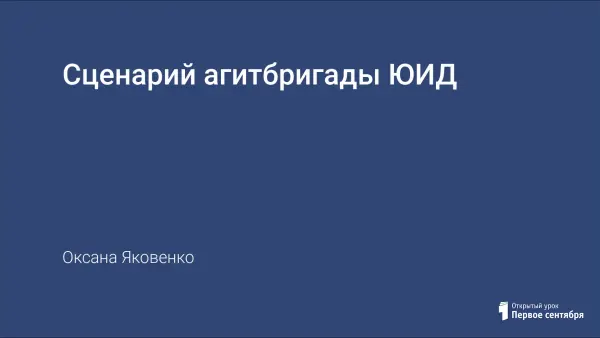Профилактика безопасности дорожного движения является неотъемлемой частью внеклассной работы. В настоящее время активно развивается движение ЮИД. В статье представлен оригинальный авторский сценарий для выступления агитбригады юных инспекторов движения (ЮИД).