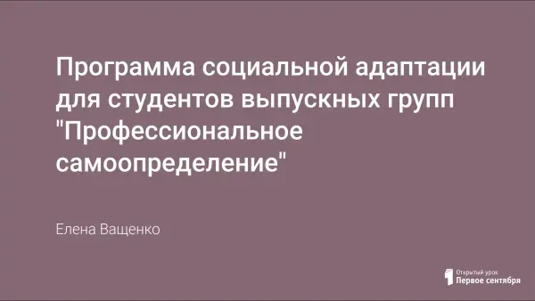 Целевым назначением предлагаемой 10-часовой программы является содействие в трудоустройстве выпускников колледжа. Курс направлен на активизацию жизненной позиции молодежи, повышение чувства ответственности за себя и свое профессиональное будущее, на оказание помощи молодым людям в планировании профессиональной карьеры и своего трудоустройства, формирование у них навыков самостоятельного поиска работы.