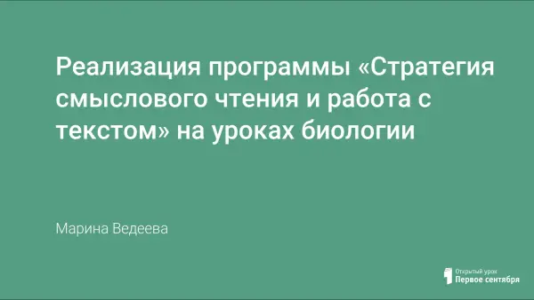 Освоение основной образовательной программы основного общего образования предполагает развитие у школьников читательской компетентности. Достижение этого результата осуществляется на всех предметах в рамках реализации междисциплинарной программ «Стратегии смыслового чтения». Виды текстов и приёмы работы с текстами, используемые на уроках биологии.