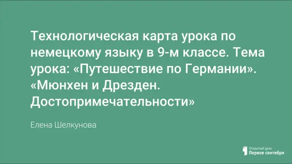 Вашему вниманию предлагается технологическая карта урока немецкого языка в 9-м классе по теме «Путешествие в Германию». С её помощью дети узнают о крупнейших городах страны изучаемого языка, их достопримечательностях, а также расширят свой кругозор в области страноведения.