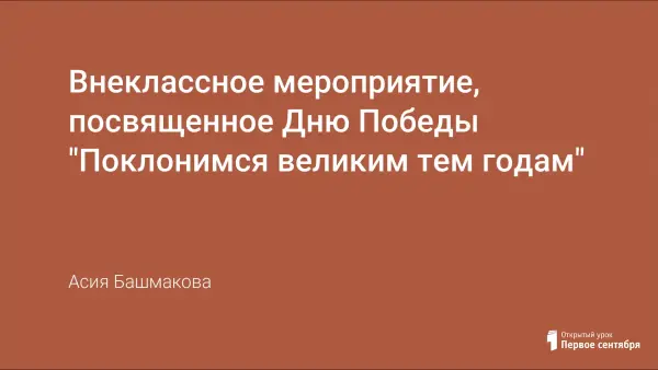 Цель мероприятия, посвящённого Дню Победы: воспитание у учащихся чувства гордости за историческое прошлое своего народа, чувства благодарности погибшим в годы Великой Отечественной войны, выжившим ветеранам и людям старшего поколения.
