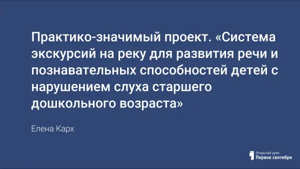 Наши воспитанники имеют нарушения слуха и круглосуточно находятся на территории детского сада, поэтому у них недостаточные, неполные знания и представления об окружающем мире. Вследствие этого не все дети владеют навыками безопасного поведения на природе. Задачей данной работы является разработка плана проведения экскурсий с детьми старшей группы с целью познакомить их с сезонными изменениями в природе, с правилами поведения на реке и сформировать у них представление о времяпрепровождении на реках.