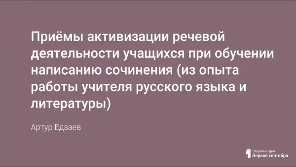 В статье приводятся приёмы активизации речевой деятельности при работе с текстом. Все приёмы взяты из опыта работы учителя русского языка и литературы МБОУ СОШ №3 г.Алагир РСО-Алания Едзаева Артура Тамбиевича и успешно им используются. Эти приёмы позволяют научить писать сочинение, использовать своё воображение при написании сочинения.