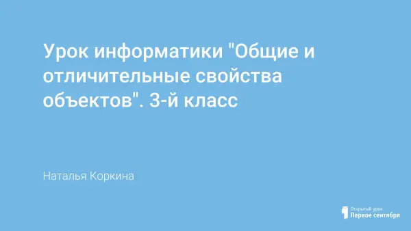 Урок актуализирует знания о многообразии свойств объектов, их категорий; формирует представление об общих и отличительных свойствах объектов; знакомит со спецификой общих и отличительных свойств.
