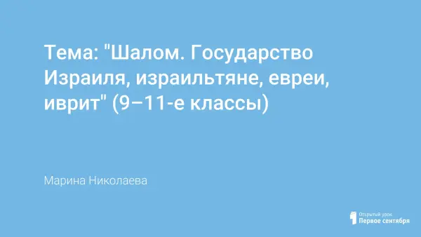 На уроке происходит ознакомление с молодым государством (с 1948 года), с древними традициями мировой культуры. Маца, кипа, Талмуд, синагога, минора, хала, кущи, чолент, киб(б)уц, Галилея – читая эти слова можно провести много параллелей в мировой культуре. Приглашаем команды школ в путешествие по этой древней земле.