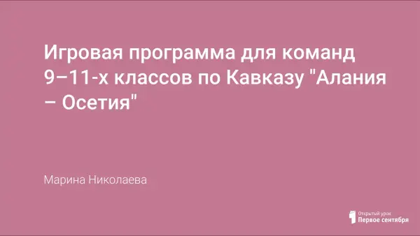 Игровая программа рассказывает о древнейшем этносе Кавказа; об осетинах, проживающих в Северной Алании и Южной Осетии. Учащиеся знакомятся с нартским эпосом; особенностями кухни; проводится параллель с тюркским и русским языками; изучается традиционная одежда.