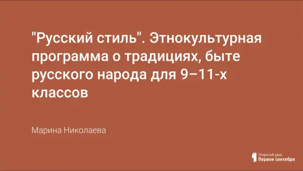Представлена этнокультурная игровая программа для 9–11-х классов. Учащиеся получают этнографические познания о русском народе, его традициях, обрядах, преданиях.