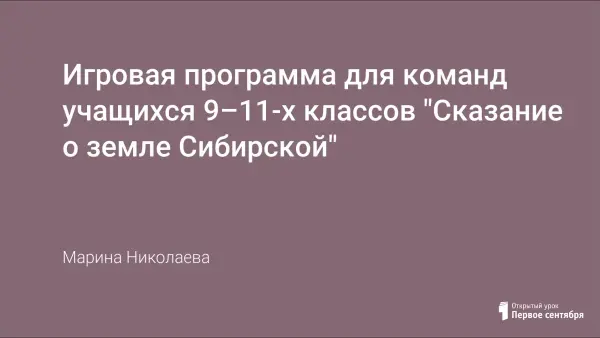 Цель мероприятия: воспитывать любовь к рРодине; уважать традиции народа, проживающего на территории России. Игра ориентирована на 5–6-е классы, предварительная подготовка по определенным словам. Сценарий составлен по достопримечательностям Хакасии, на национальном костюме, истории (В.И. Ленин в Шушенском, Агафья Лыкова – ответы в видеофрагментах). К сценарию прилагается презентация и 3 видеофрагмента (к 1, 5, 20-му слайду). Для оценки играющих прилагается лист эксперта.