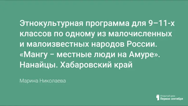 Нанайцы — коренной малочисленный, тунгусоязычный народ Дальнего Востока, проживающий по берегам Амура и его притоков Уссури и Сунгари в России и Китае. Тунгусоязычные народы Амура с давних пор были собаководами долины рек Уссури, Сунгари и Амура. Вот об этой стране на Амуре, а точнее о народе, проживающим в Хабаровском крае идет речь в этнокультурной программе.