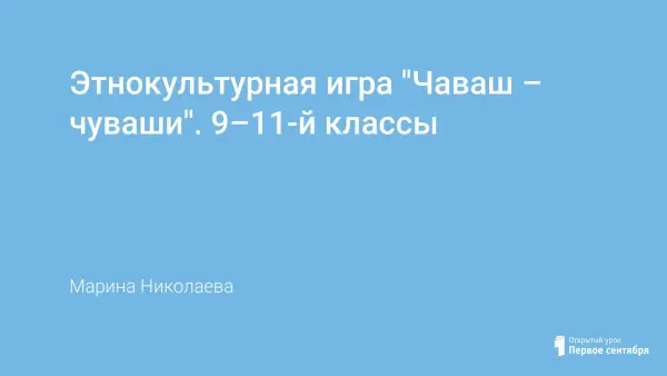 Этнокультурная игра, посвященная народам России и, в частности чувашскому народу, для учащихся 9–11-х классов. Цель игры: как можно подробнее рассказать о культуре, истории традициях чувашского народа в игровой развлекательной форме. Сценарий поддерживается презентацией с видеофрагментами.