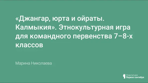 Калмыки - единственный народ монгольской ветви алтайской языковой семьи, живущие в европейской части России. Больше ступ дацанов нигде столько в Европе не увидишь, джомбу вряд ли пьют, Цаган сар и зулу не встречают. Сценарий игры представлен в форме телепередачи «Орёл и Решка». Поддержкой для сценария является презентация, состоящая из 17 слайдов и видеофрагмента «Васюки».