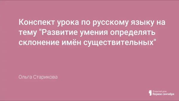 Цели урока: Учить детей определять склонения имен существительных по двум основным признакам: окончанию и роду, стоящих как в начальной форме, так и в косвенной. Развивать умение быстро определять склонение существительного, логическое мышление, память, речь, воображение, навыки самостоятельной работы, орфографическую зоркость. Способствовать самореализации личности в учебной деятельности.