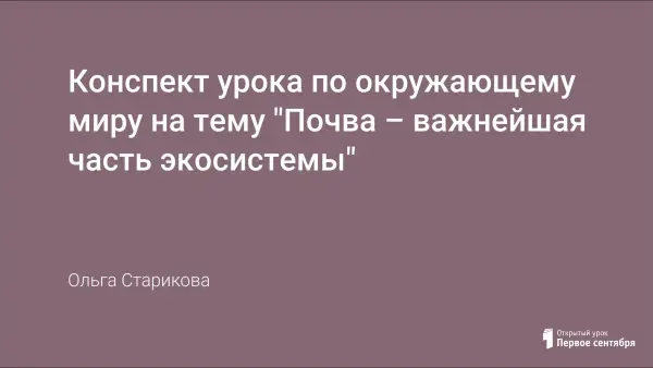 Цель урока: сформировать представление о почве, как важнейшей части экосистемы. Задачи: познакомиться со свойствами почвы, её ролью в жизни экосистемы; установить причину плодородия почв с учётом новых знаний о круговороте веществ.