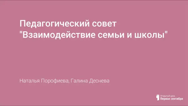 Педсовет, посвящённый одной из актуальных и сложных проблем в работе каждой школы – проблеме взаимодействия семьи и школы проводится в форме деловой игры, где используются интерактивные методы: «мозговой штурм», групповая дискуссия, метод Эдварда де Боно «Шесть шляп мышления», выполнение ролей в группе, позволяющие включиться в работу всем членам педагогического коллектива. Такая форма проведения педсовета поможет педагогам овладеть педагогическими навыками, приемами, формами и методиками