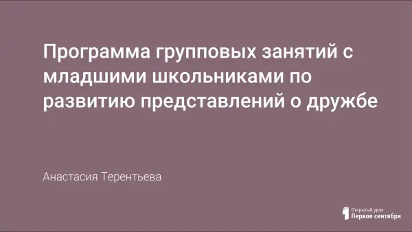 Программа групповых занятий с младшими школьниками по развитию представлений о дружбе