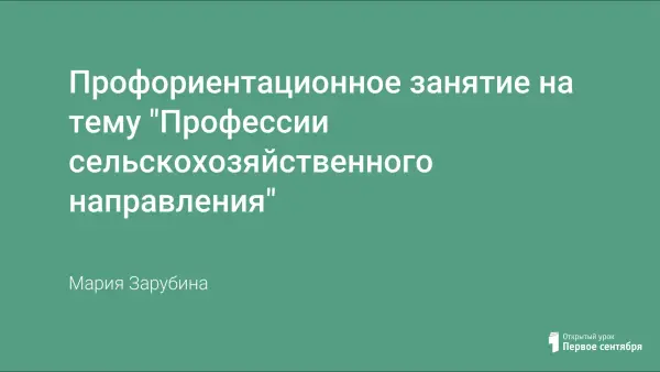 Профориентационное занятие посвящено профессиям сельскохозяйственного направления с целью расширить представления учащихся об этих; коррегировать логическое мышление на основе анализа и синтеза посредством упражнения «Реклама профессий»; воспитывать положительную мотивацию к профессиям сельскохозяйственного направления.