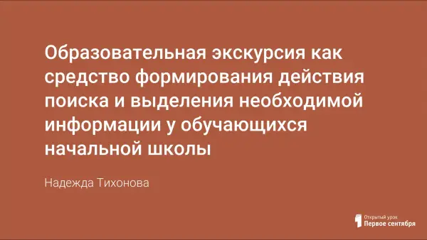 В статье рассмотрено влияние образовательной экскурсии на формирование универсальных учебных действий. Отмечен план работы и обозначены результаты диагностической работы, направленной на оценку уровня сформированности действия поиска и выделения необходимой информации у учащихся 3-го класса в процессе организации и проведения образовательных экскурсий.