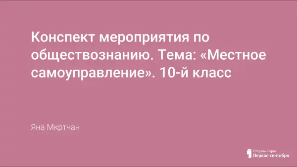 Цели урока: дать определение такому виду публичной власти, как местное самоуправление; рассмотреть принципы, основные функции деятельности местного самоуправления, его роль в демократическом обществе; пробудить у учащихся желание активно участвовать в решении общественно значимых проблем, иметь активную жизненную позицию.
