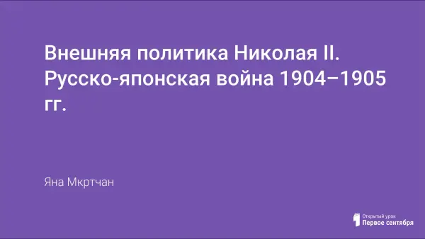 Цели урока: рассмотреть внешнюю политику Николая II, определить основные направления; познакомить учащихся с событиями русско-японской войны и определить причины поражения русской армии; определить значение и влияние данной войны на дальнейшее развитие русской истории; воспитывать чувство патриотизма и уважения к героическим событиям в истории Родины.