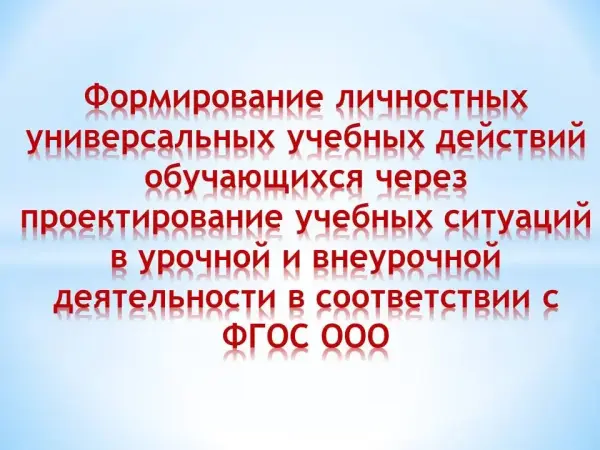 Новые социальные запросы определяют цели образования как общекультурное, личностное и познавательное развитие учащихся, обеспечивают такую ключевую компетенцию образования как «Научить учиться». Личностные универсальные учебные действия обеспечивают ценностно-смысловую ориентацию учащихся (умение соотносить поступки и события с принятыми этическими принципами, знание моральных норм и умение выделить нравственный аспект поведения) и ориентацию в социальных ролях и межличностных отношениях.