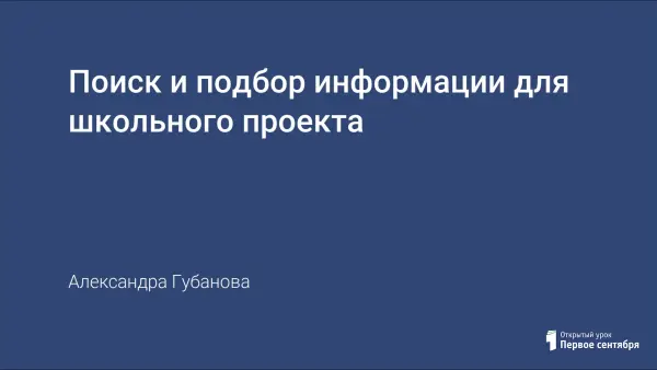 Поиск информации или информационный поиск – важная часть подготовки школьного проекта. Без качественного прохождения данного этапа невозможно сделать успешный проект. Поэтому важно понимать, как правильно искать информацию, где её можно найти, какие источники информации существуют и являются надежными и достоверными. Цель поиска информации является получение различных сведений по теме проекта из разных источников. Поиск информации – это разновидность процесса обработки информации. Во время урока необходимо сделать акцент на том, как правильно выбирать источники информации, какие существуют принципы информационного поиска, каким источникам можно доверять.