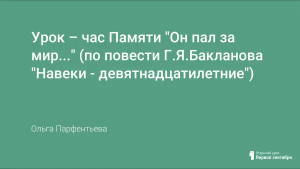 Цели урока: систематизировать и обобщить знания учащихся по повести Г.Я.Бакланова «Навеки - девятнадцатилетние»; углубить знания о войне, посмотреть на войну через произведения литературы.