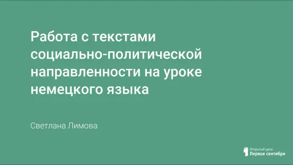 Тексты социально-политической направленности отражают современное состояние общества, знакомят учащихся с пластом социально-политической лексики и побуждают к дискуссии по наиболее актуальным вопросам из жизни общества. В статье предлагается вариант работы с текстом "Мигранты" (уровень В2), который посвящён проблемам переселенцев в Германии. Основные виды работы с текстом направлены на расширение словарного запаса, понимание прочитанного, развитие устной и письменной иноязычной речи.