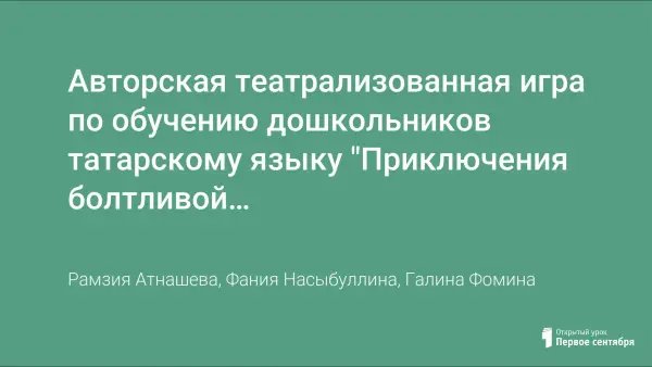 Авторская театрализованная игра по обучению дошкольников татарскому языку "Приключения болтливой утки в лесу" по мотивам сказки А.Алиша «Сертомас Үрдәк” - “Болтливая утка”