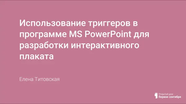 Возможности визуализации информации в программе MS PowerPoint довольно разнообразны, но все они используются учителем, главным образом, для того, чтобы акцентировать внимание учеников к текущей задаче урока, представив ее в творческой наглядной форме. При создании интерактивного плаката в MS PowerPoint с помощью триггеров можно организовать анимацию объектов в нужном порядке с с применением различных эффектов. Триггер в PowerPoint – объект на слайде, щелчок по которому запускает анимацию другого объекта или совокупности объектов в нужной последовательности, т.е. анимация объектов выполняется по заданному сценарию. Чаще всего триггеры применяются для создания тестов, викторин, игр в интерактивном режиме.