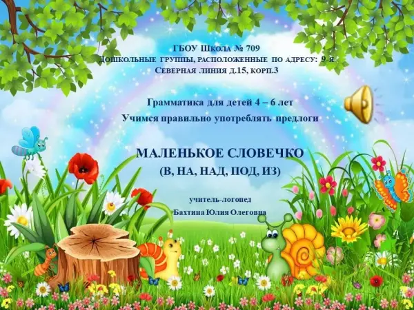 Грамматика для детей 4-6 лет. Презентация способствует формированию грамматических представлений и навыков; учит ребёнка правильно употреблять предлоги (В, НА, НАД, ПОД, ИЗ).