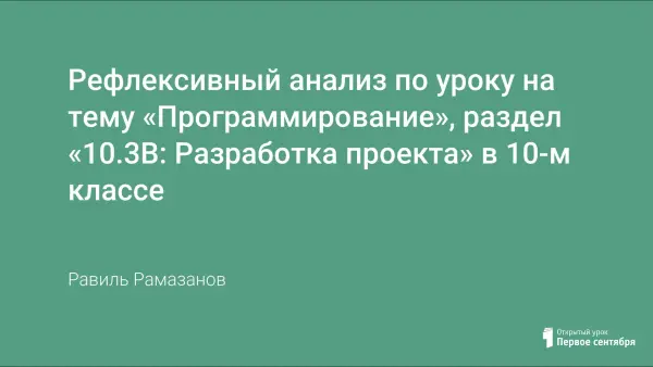 Анализ результатов внешнего суммативного оценивания в 10-м классе в течение нескольких лет, показывает, что наибольшее затруднения вызывают темы «Работа с массивами», «Оптимизация кода», «Программирование», где учащимся необходимо уметь анализировать программный код, полученный в ходе проектной работы. В связи с этим у меня появилась педагогическая потребность в анализе и решении выявленных затруднений. Таким образом, целью моего профессионального роста стало «Развитие аналитических способностей к решению задач по программированию у учащихся через использование интерактивных онлайн сервисов и ресурсов». Это объясняет мой выбор раздела для написания отчета: «Разработка проекта» в 10-м классе.
