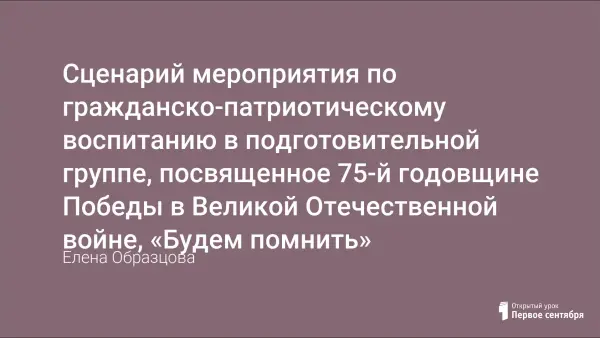 Цель занятия: укреплять нравственно-патриотические чувства дошкольников через совместные мероприятия взрослых и детей; формировать гражданскую позицию; расширять и систематизировать знания детей о событиях ВОВ; закреплять представление о значении победы нашего народа в ВОВ; способствовать формированию интереса к истории своей страны; воспитывать уважительное отношение к памяти людей, прошедших войну, чувство гордости за свой народ, чувство любви к Родине.