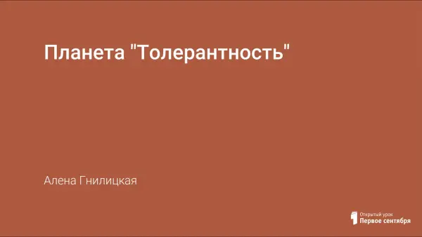 Урок в наглядной форме раскрывает понятие "толерантность" – терпимость к иному мировоззрению, образу жизни, поведению и обычаям.