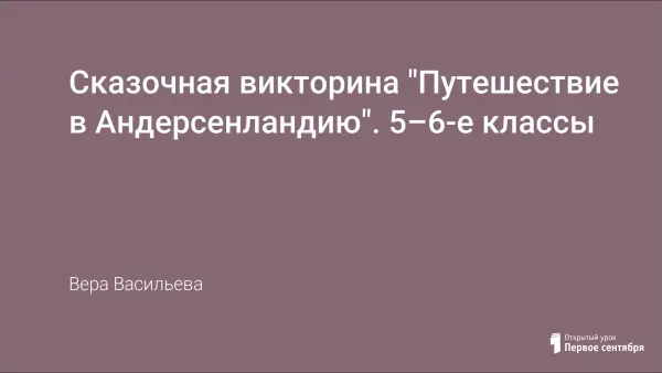 Форма проведения – викторина. Использование различного рода заданий, использование компьютерной презентации позволяет в интересной форме обобщить знания учащихся по творчеству Х.-К. Андерсена; закрепить знание учащимися содержание сказок писателя. Необычные задания способствуют глубокому, осознанному погружению школьников в тему занятия. В презентации содержатся биографические сведения о писателе, о памятниках сказочным героям.