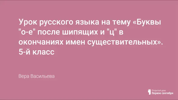 Цель урока: познакомить учащихся с условиями выбора букв "о и е" после шипящих и "ц" в окончаниях имен существительных; развивать навыки орфографической зоркости.
