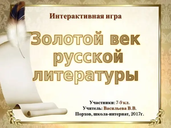 Внеклассное мероприятие по литературе "Золотой век русской литературы". 7–9-е классы