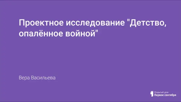 Материалы проекта рассчитаны на возрастную категорию обучающихся 5–7-х классов. Одна из главных воспитательных целей проекта – способствовать повышению уровня патриотической грамотности учащихся, воспитывать познавательный интерес к историческому прошлому своей страны, чувство благодарности к детям войны, ветеранам, воспитывать умение сочувствовать, сопереживать чужому горю.