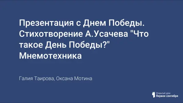 Презентация с Днем Победы. Стихотворение А.Усачева "Что такое День Победы?" Мнемотехника
