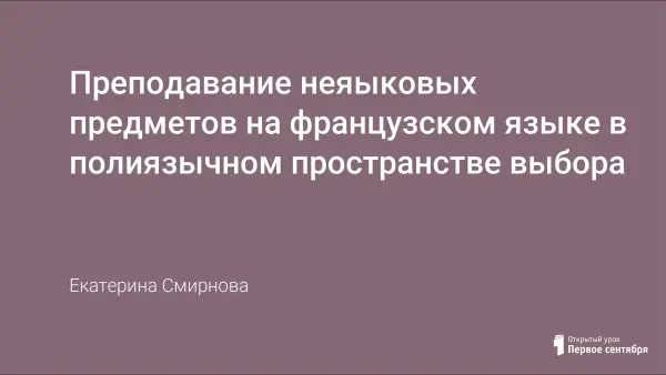 Преподавание неяыковых предметов на французском языке в полиязычном пространстве выбора