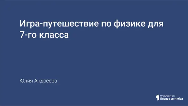 Игра-путешествие по физике для 7-го класса может быть проведена в конце I четверти как обобщение и контроль первой темы «Введение» и логичный переход к теме «Механика» или как внеклассное мероприятие для одного или нескольких классов. Цель игры: приблизить изучаемые на уроках физики законы к окружающему миру, ко всем тем явлениям, которые встречаются каждый день: на улице, на страницах книги, на экране телевизора, повысить познавательный интерес к предмету.