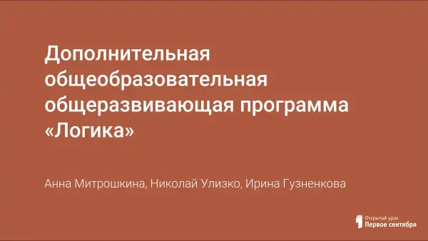 Данная дополнительная общеобразовательная общеразвивающая программа естественнонаучной направленности «Логика» стартового уровня, реализуется на базе МАОУДО Центр «Диалог», рассчитана на 62 часа в течении 1 года для обучающихся 12–16 лет. В программе подробно рассматривается формальная логика от понятий до умозаключений, а, изучив теорию графов, ребята используют ее как инструмент во всех темах курса от логики до комбинаторики.